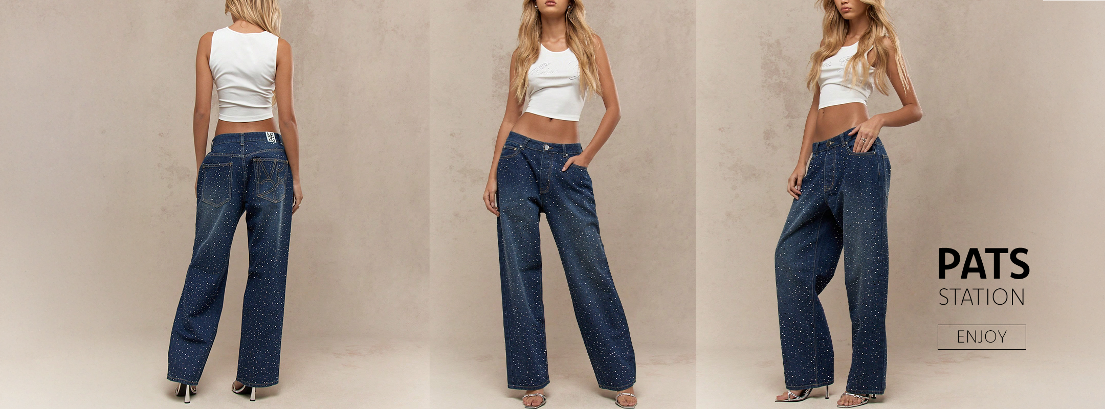 Women's High-Waisted Jeans with Luxurious Rhinestones